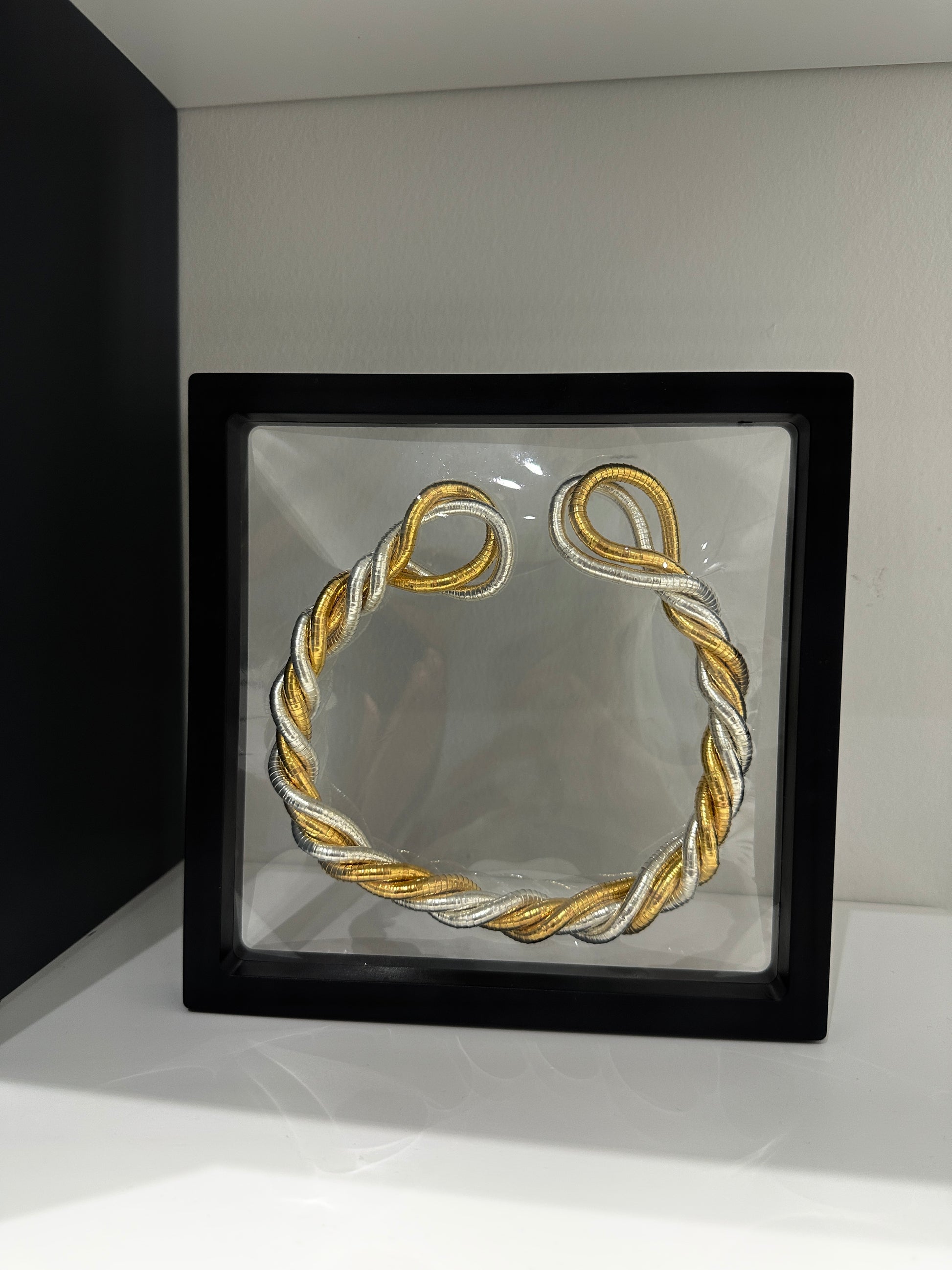 Sculpted to stand out. The Bendable Necklace is a bold, flexible design that adapts to your style - wear it as a statement necklace, arm cuff, or twisted accessory.